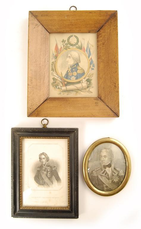 'Lord Nelson', an engraving after Hopner, 5.5 x 3.75in (14 x 9.5cm), and two other engravings. (3)