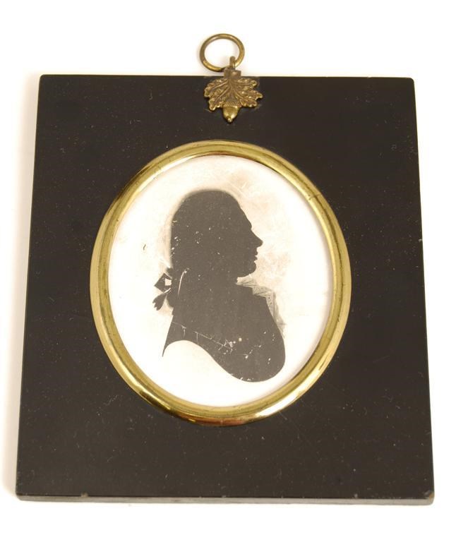 John Miers c.1758-1821. An oval silhouette portrait bust of John Foxcroft, with remains of label to the reverse 'Miers, LEEDS,' 3.5 x 3in (9 x 7.5cm) in an ebonised frame.