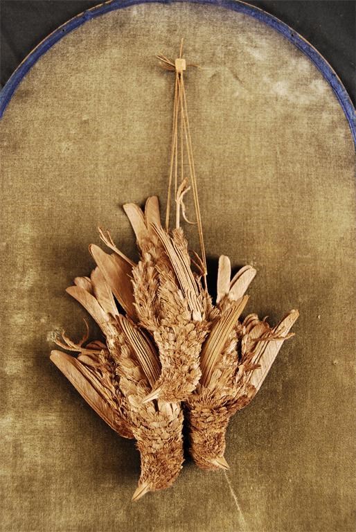 A 19th century French carved wood and leather group of three birds, in the manner of Demontreuil, the dead birds suspended from a nail and mounted on a plush lined back within a glazed walnut arched case, 19.25 x 12.25in (48.9 x 31cm). A similar example of two woodcock was sold in these rooms on 11th March 2008 for £4,200.