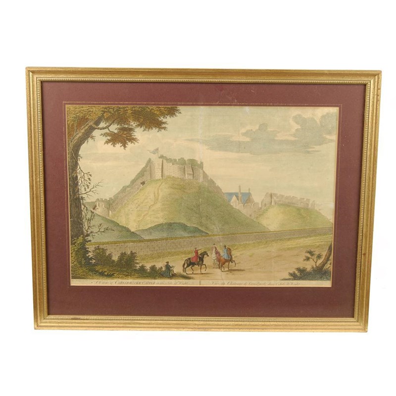 After A. Menageot. 'A View of Carisbrooke Castle' on the Isle of Wight, colour engraving, 12.25 x 17.75in (31 x 45cm) and another view from same series. (2)