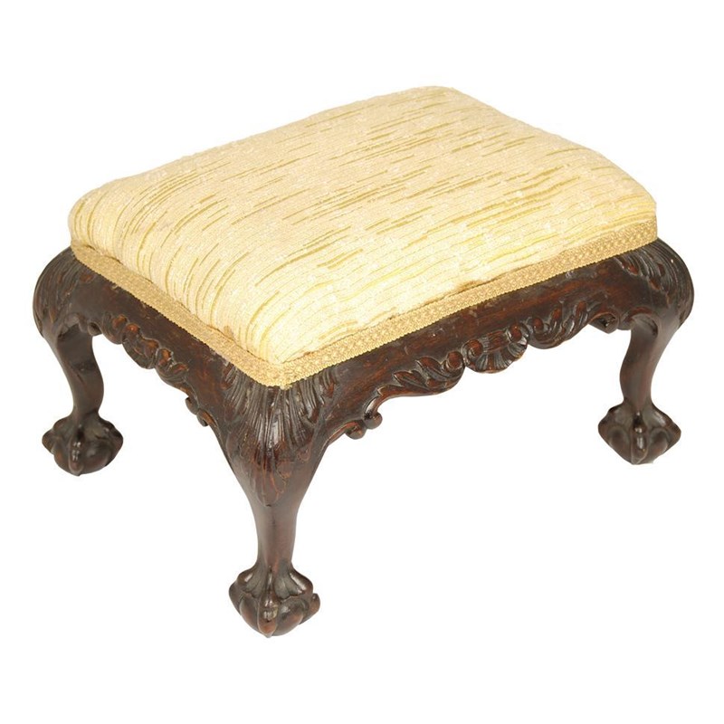 A late 19th century carved oak footstool, with stuffed over top, 7.75in (19.5cm) h, 12in (30.5cm) w, 9in (23cm) d.