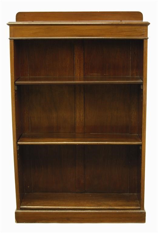 A mahogany open bookcase, with two shelves, early 20th century, 50.75in (128.7cm) h, 32in (81cm) w, 10in (25.3cm) d.