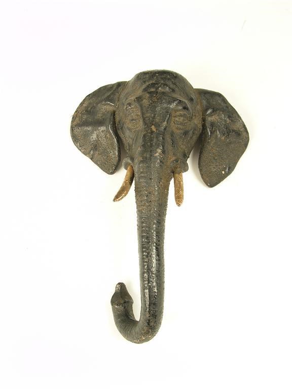 A cast iron and painted mount, modelled as an elephant's head, 8in (20cm) h, 5.5in (14cm) w.