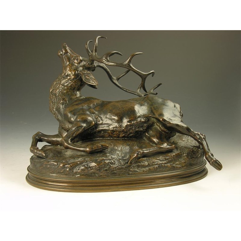 After Louis Vidal (1831 - 1892). A dying stag, bronze, signed Vidal (aveugle), 10in (25.5cm) h.