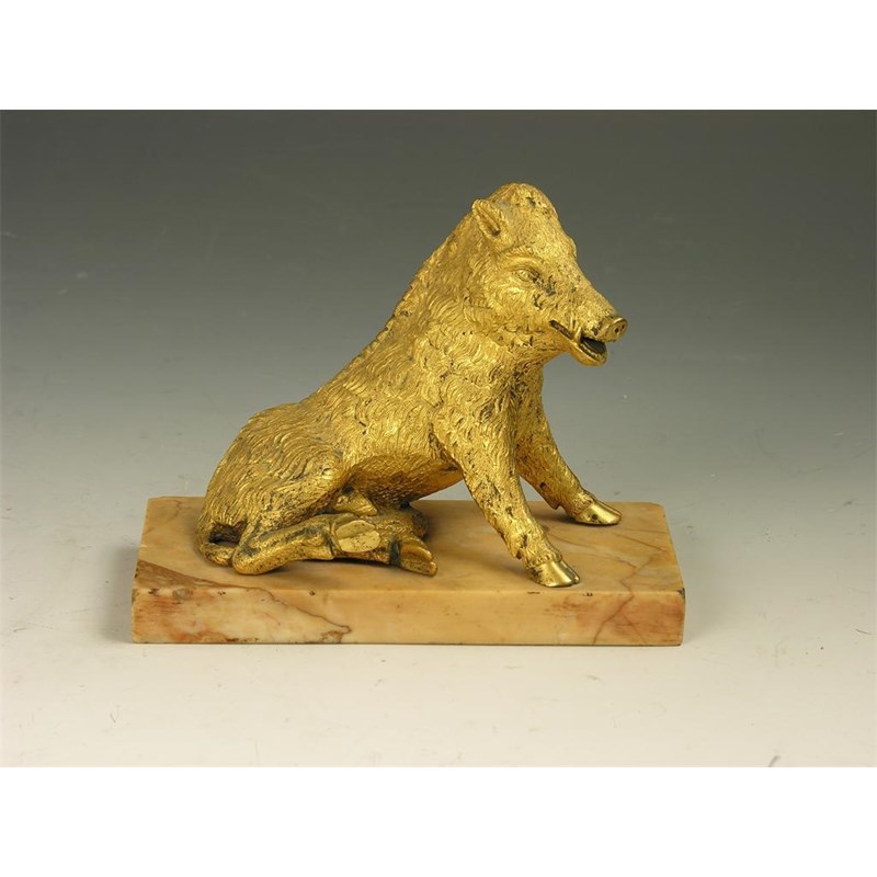 A gilt bronze model of the Medicci boar, after the antique, on a sienna marble base, 4.75in (12cm) h, 6in (15cm) w.
