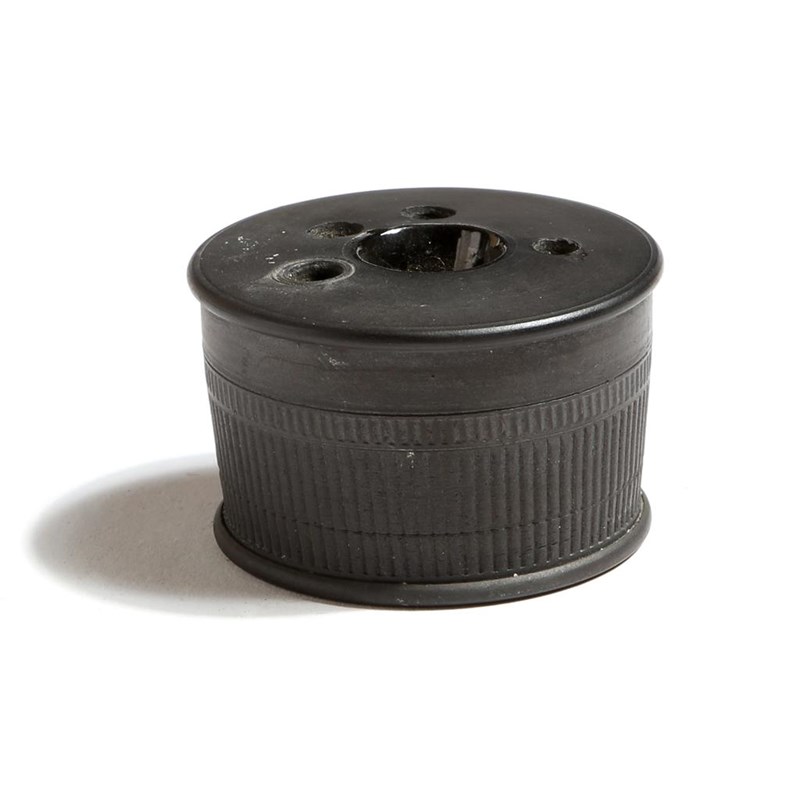 A 19th century black basalt pottery inkwell, with five apertures for pens and quills, with a fluted body, 6cm diameter.