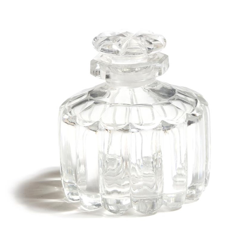A cut glass inkwell, with a ribbed body and a mushroom stopper, first half 19th century, 8cm high.