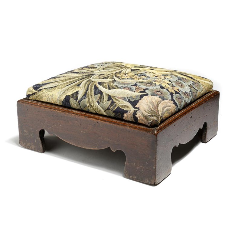 A mahogany stool, with a tapestry style seat on bracket feet, 31.7cm wide, 29cm deep.