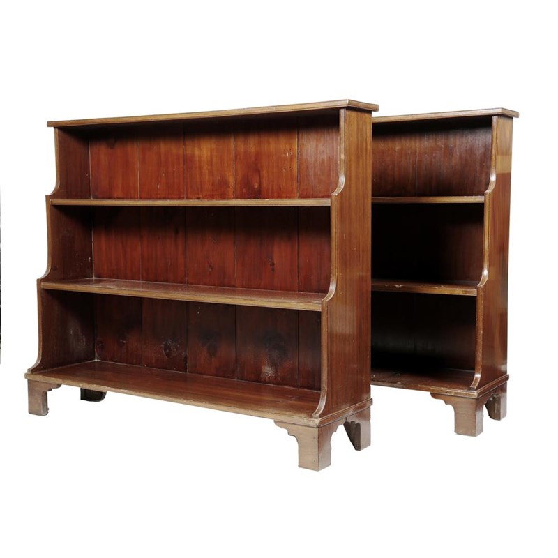 A pair of Regency style mahogany waterfall open bookcases, 104cm high, 126cm wide, 31.5cm deep. (2)