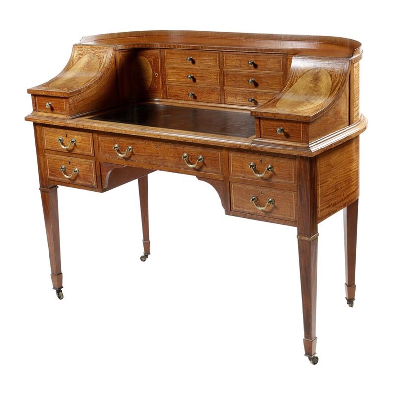 An Edwardian satinwood Carlton House desk by Maple & Co.