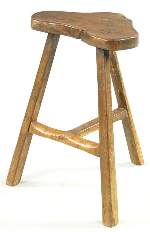 A Victorian ash cricket stool, with a shaped seat, 20in (50.8cm) h.