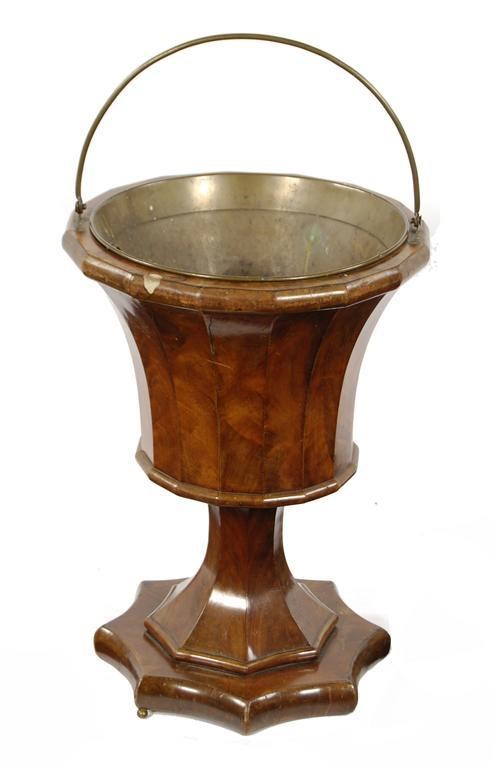 A Dutch mahogany brazier, with a brass swing handle and a lift-out liner, 19.75in (50cm) h, 15in (38cm) dia.