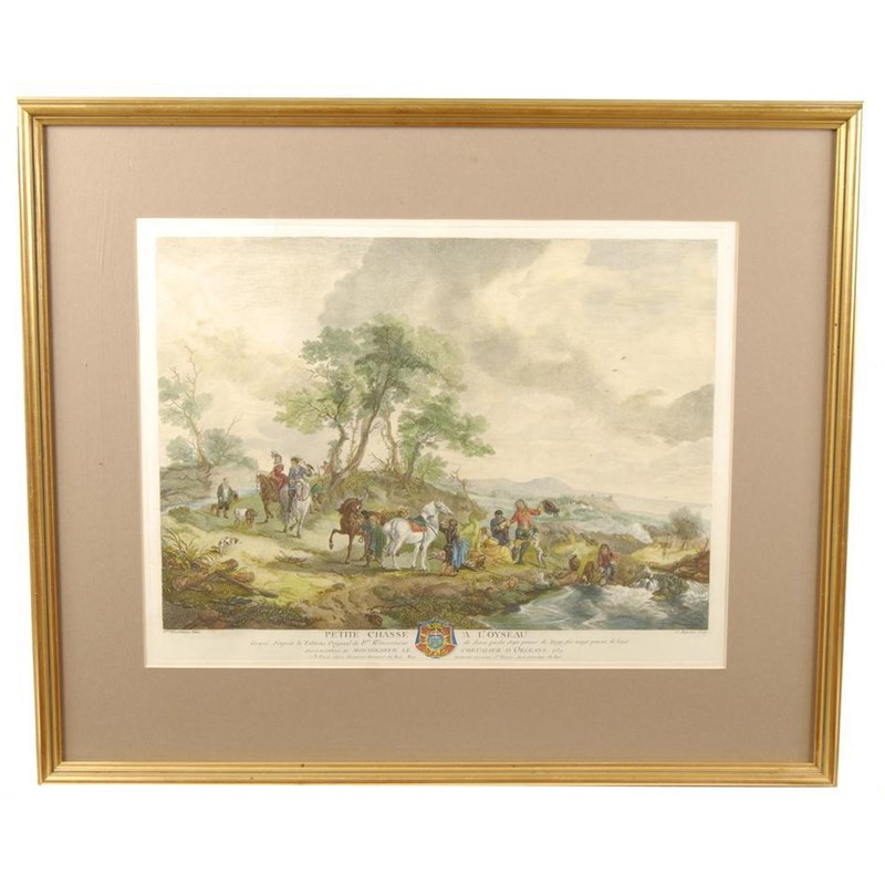 After Wouvermens. 'Petite Chasse a L'oyseaux', a coloured engraving 14.5 x 19in (37 x 48cm) and two others from the same series. (3)