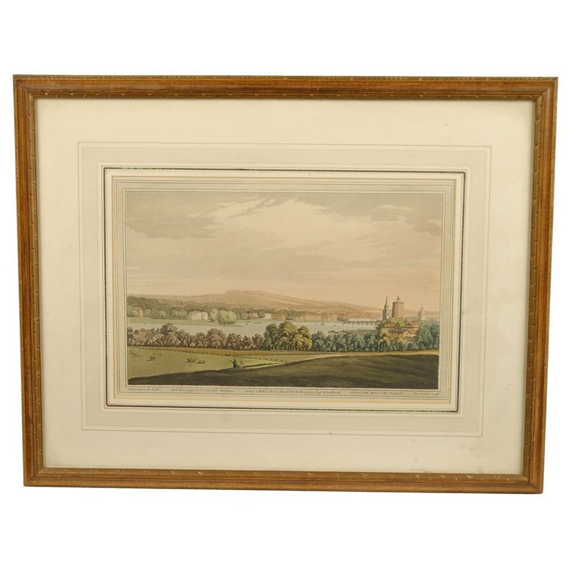 After J. Farrington. 'View of Chelsea and Battersea from East Wandsworth', 8.5 x13in (21.5 x 33cm), a coloured aquatint and four other aquatints from same series, and a sixth 'A View From Scotland Yard'. (6)