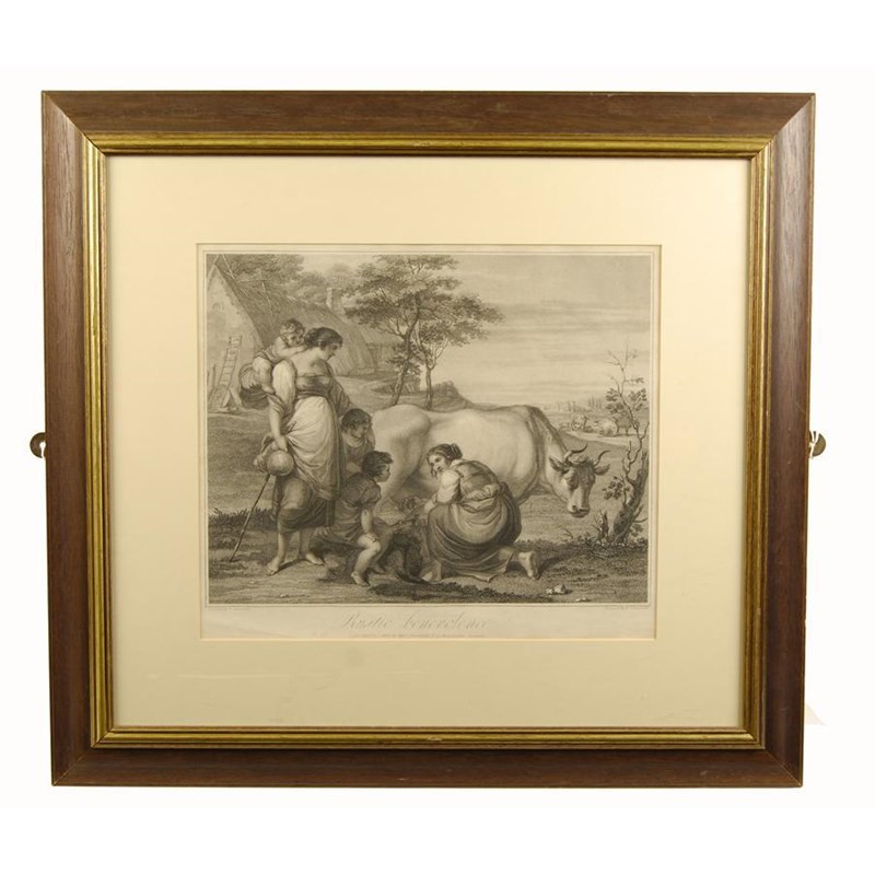 After F. Zuccarelli, 'Rustic benevolence', an engraving by N. Schiavonetti, 15 x 17.25in (38 x 44cm).