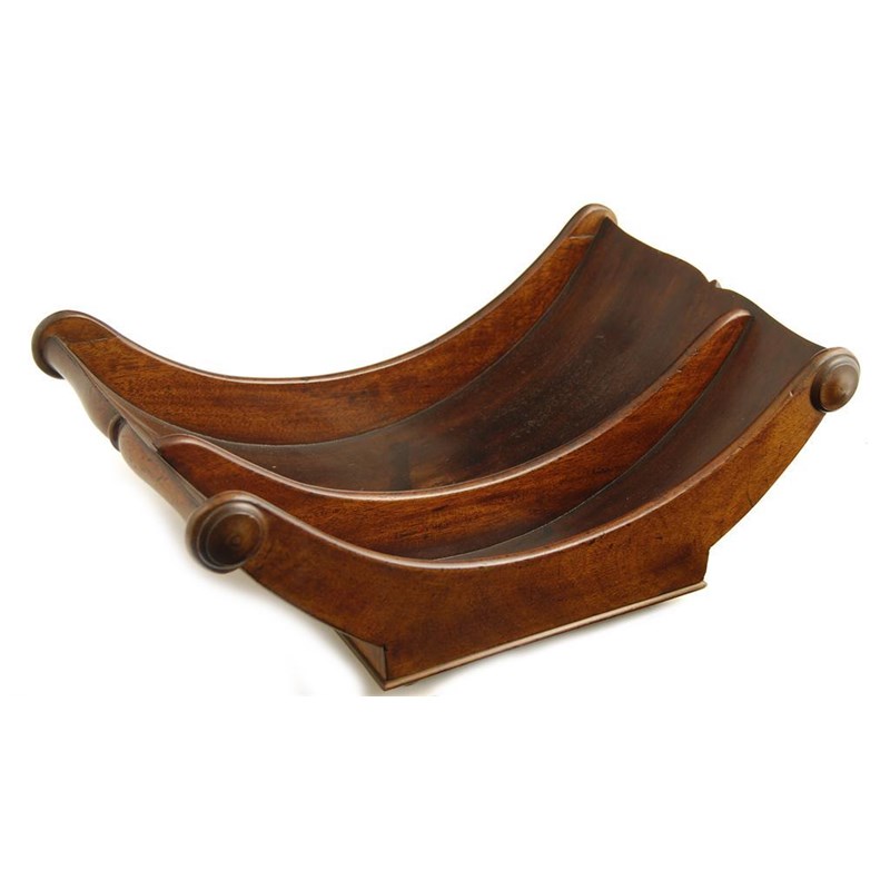 An early 19th century mahogany cheese coaster, with applied rondels and split baluster lifts, on brass roller castors, 6.25in (16cm) h, 17in (43cm) w, 11in (28cm) d. Patch repair under one lift, cracks.