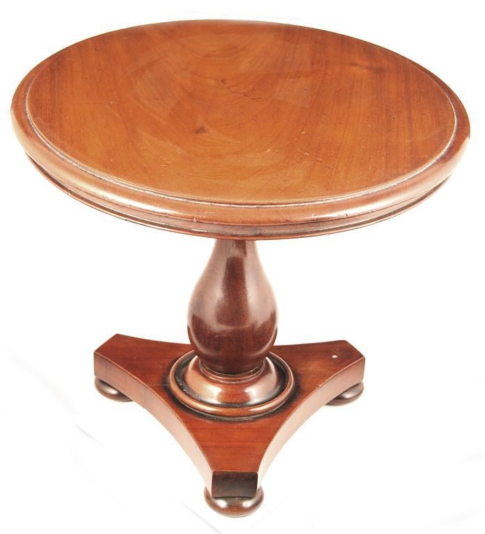 A Victorian mahogany miniature centre table, with a circular tilt-top and a baluster stem to a triform base, 10in (25.5cm) h, 11.75in (30cm) dia.