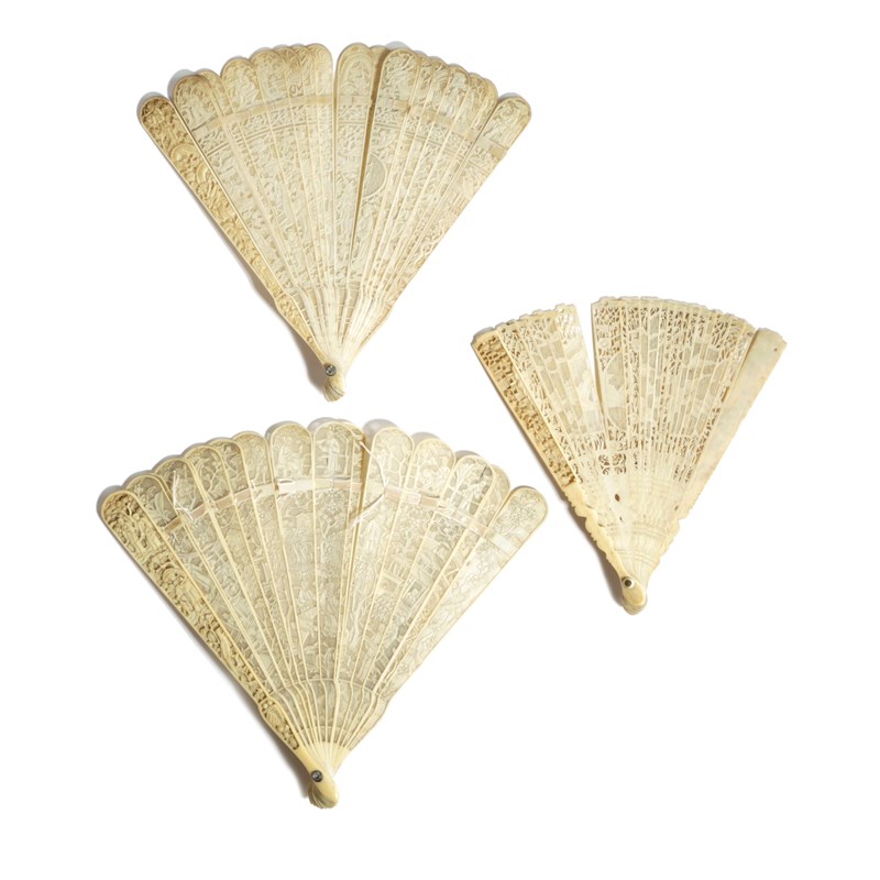 λ THREE CHINESE EXPORT IVORY BRISE FANS