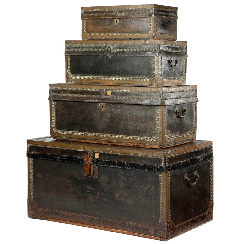 A MATCHED SET OF FOUR GRADUATED ANGLO-CHINESE CAMPHORWOOD TRUNKS