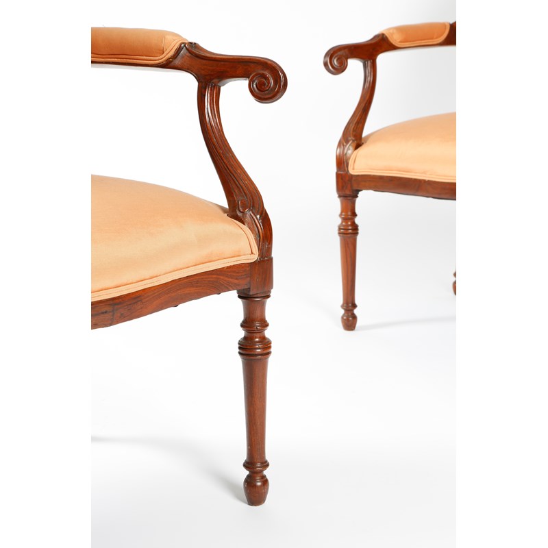 A PAIR OF ANGLO-CHINESE HUANGHUALI AND PADOUK OPEN ARMCHAIRS