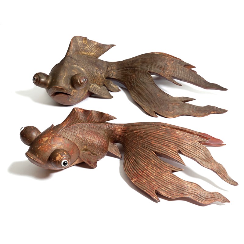 TWO LARGE JAPANESE CARVED GILTWOOD MODELS OF KOI CARP