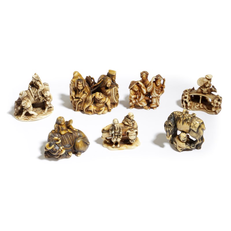 λ A COLLECTION OF SEVEN JAPANESE IVORY NETSUKE