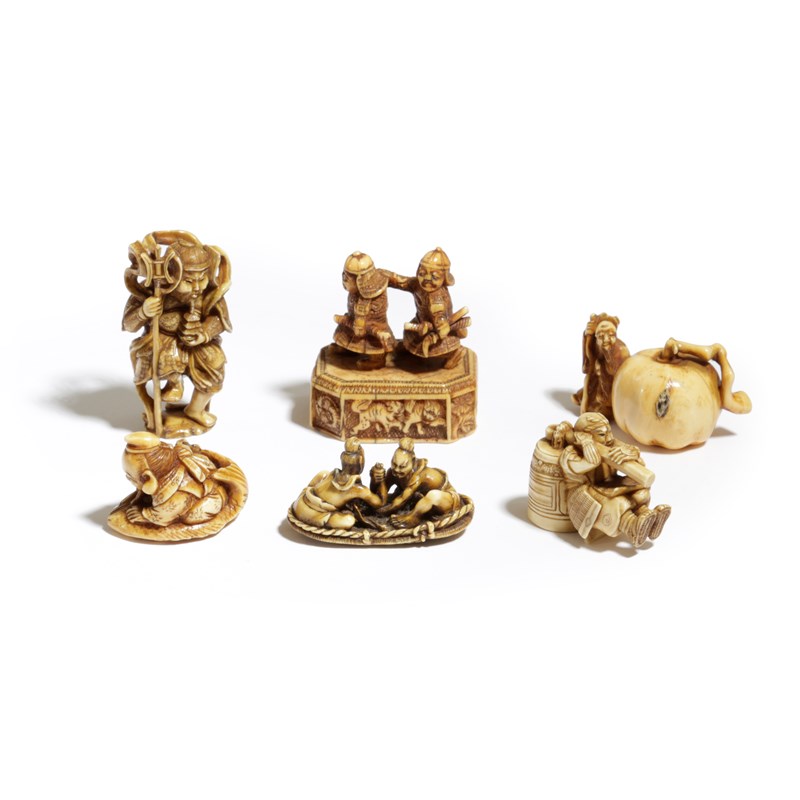 λ A COLLECTION OF SIX JAPANESE IVORY NETSUKE