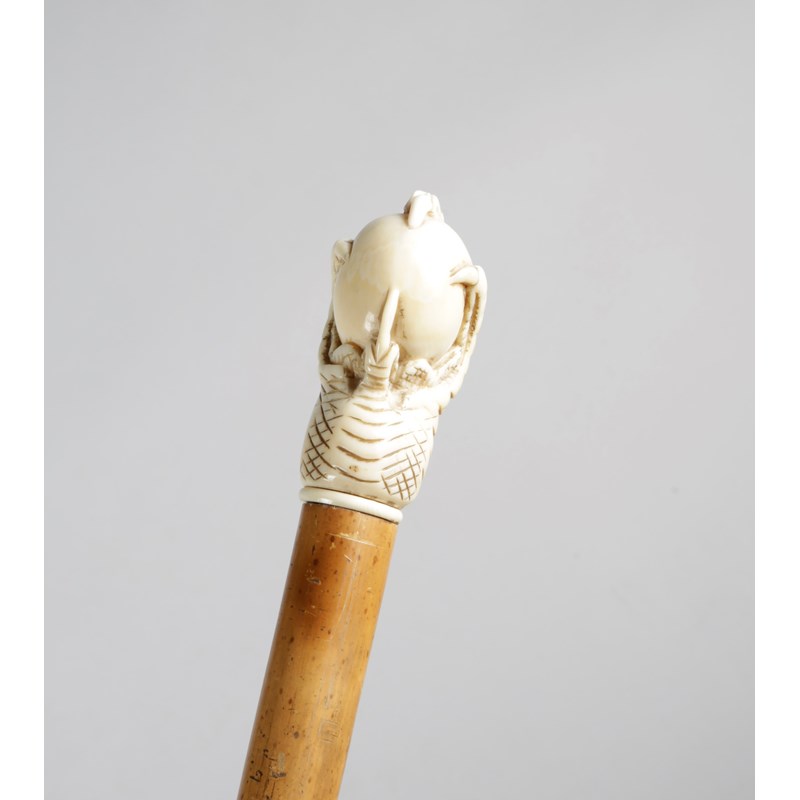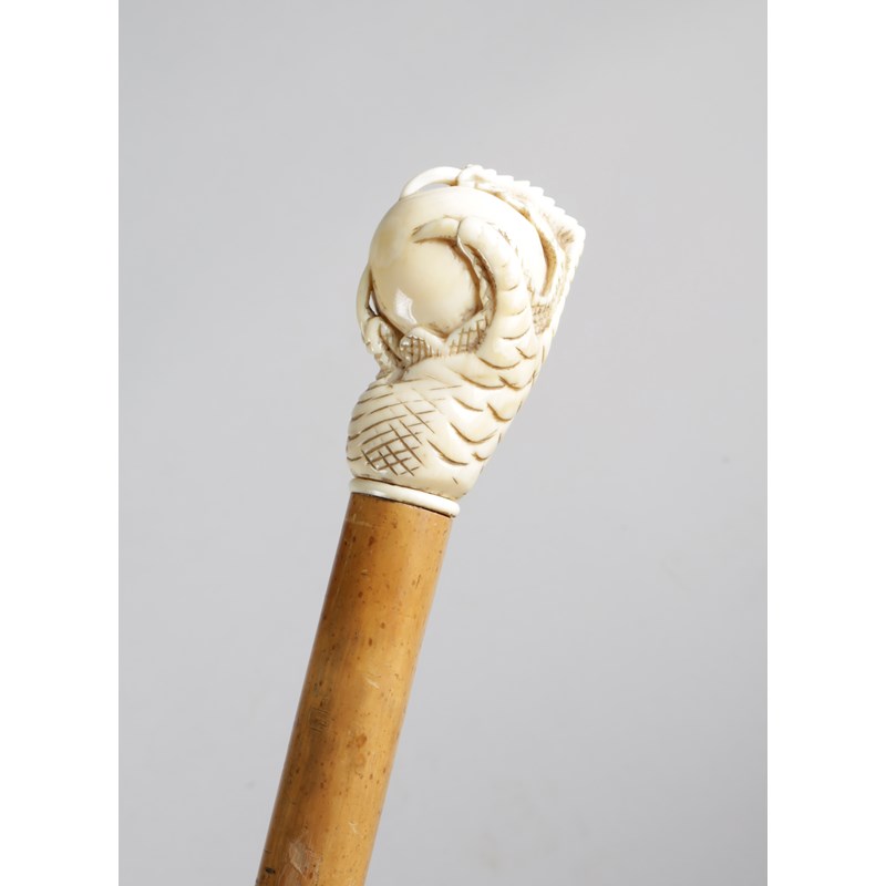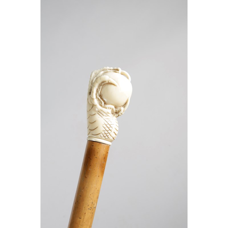 λ A LATE VICTORIAN IVORY HANDLED WALKING CANE