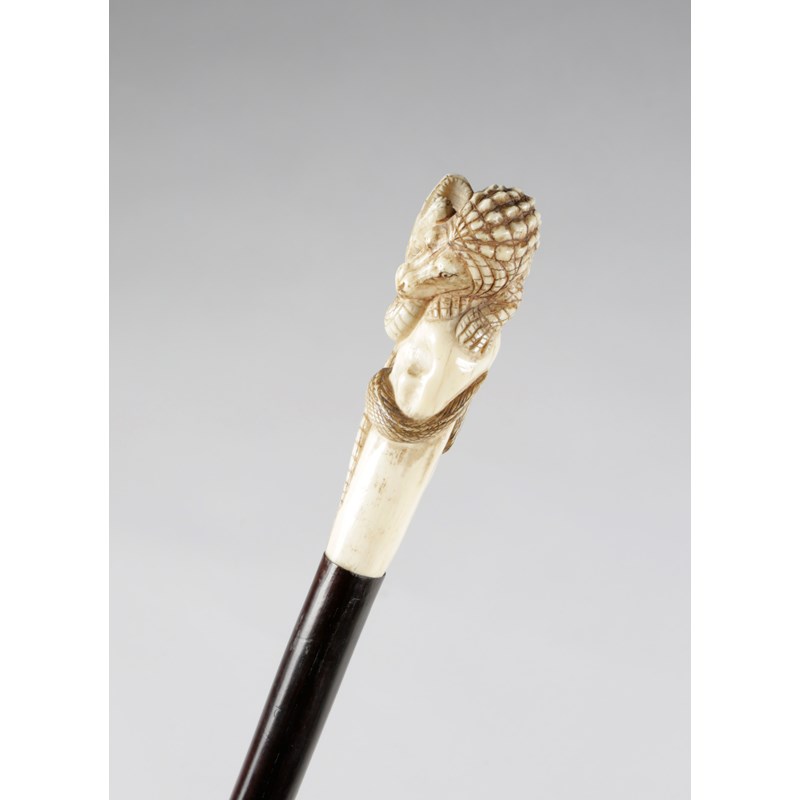carved with a crocodile devouring a snake, with an ebony shaft and ivory ferrule