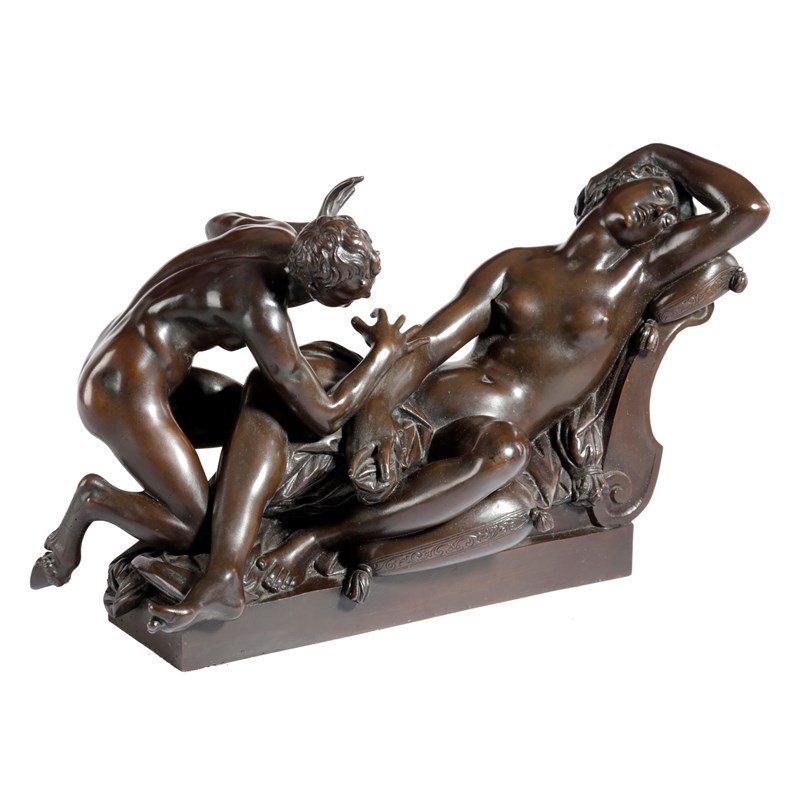 A BRONZE GRAND TOUR GROUP OF A SLEEPING NYMPH AND SATYR