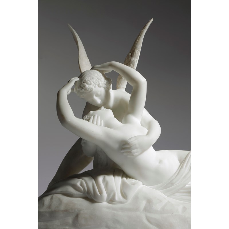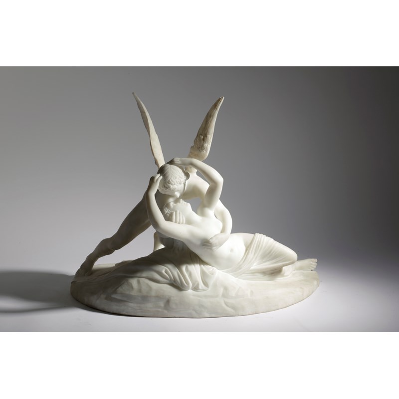 AN ITALIAN WHITE MARBLE GROUP OF CUPID AND PSYCHE