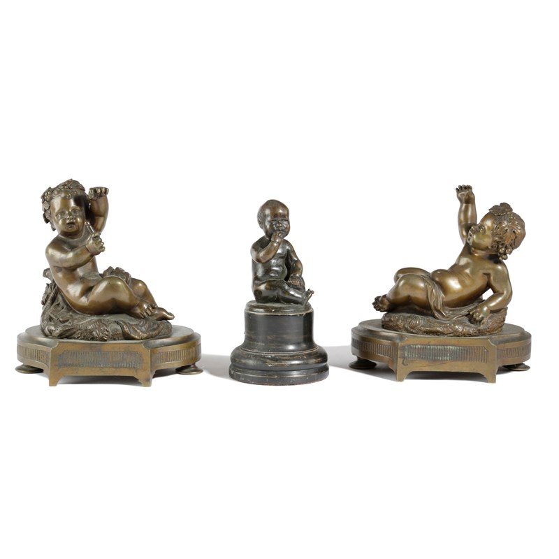 together with a bronze model of a baby boy on an ebonised socle (3)