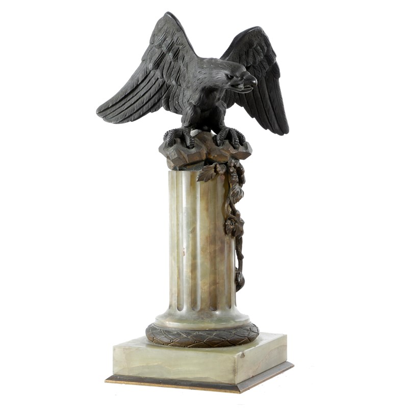 the eagle perched on a rocky outcrop on top of a fluted column, the underside stamped 'D H'