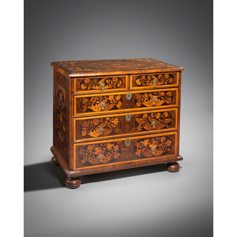A WILLIAM AND MARY OYSTER VENEERED AND MARQUETRY CHEST