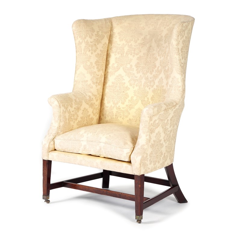 A GEORGE III MAHOGANY WING ARMCHAIR