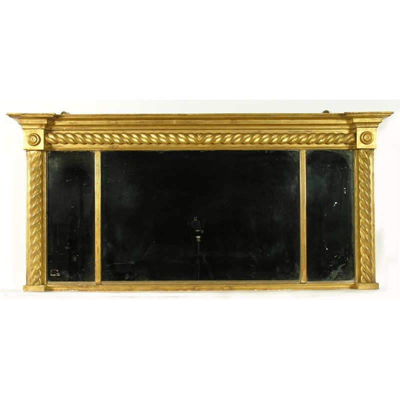 A Victorian giltwood landscape overmantel mirror, 28 x 60.5in (71 x 153cm). ++ A later plywood back covering original paper.