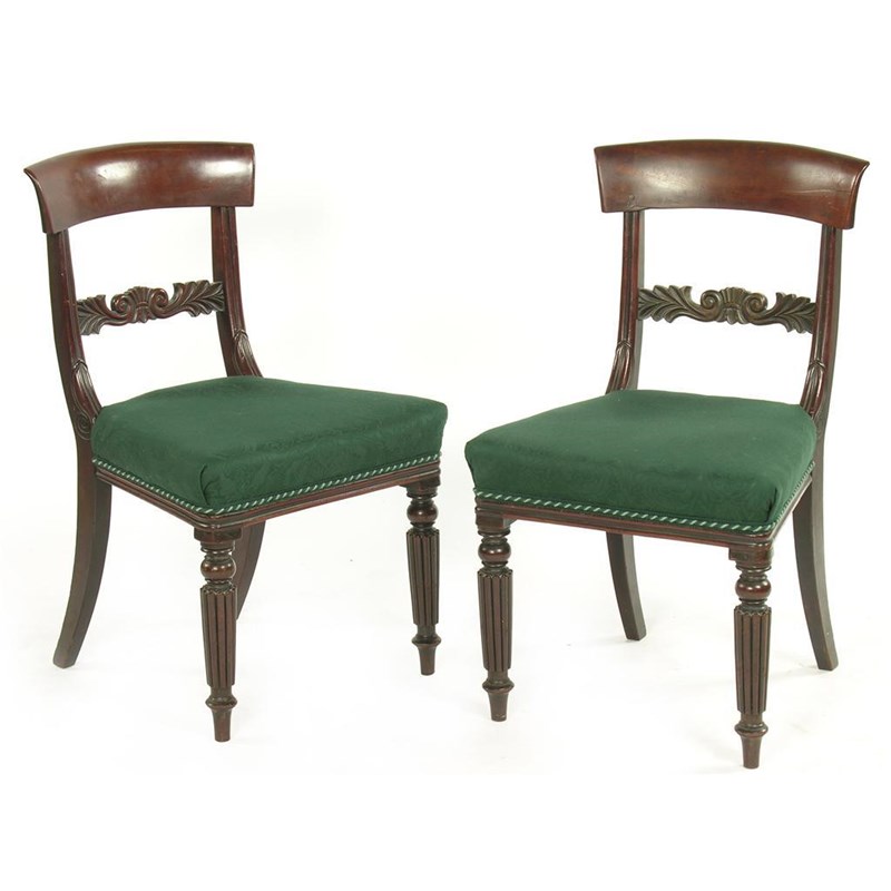 A set of five George IV mahogany side chairs, with carved horizontal splats, and a similar side chair. (6)