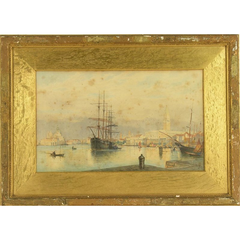 H.S.D. (monogram). Venice, watercolour, dated 1877, 11 x 18.5in (28 x 47cm). Foxed.