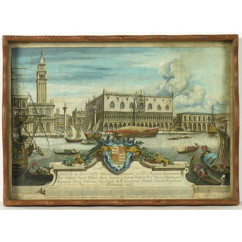 A mahogany galleried tray, inset a coloured engraving 'The Doges Palace, Venice,' 14.25 x 19.5in (36 x 49.5cm).