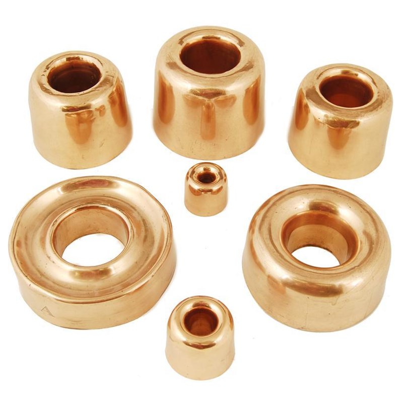 A copper ring mould, with a welled top, engraved 'A' and stamped ' Jones Bros Down St W.', 1.75in (4.5cm) h, 6in (15cm) dia., and six other ring moulds of varying sizes. (7)