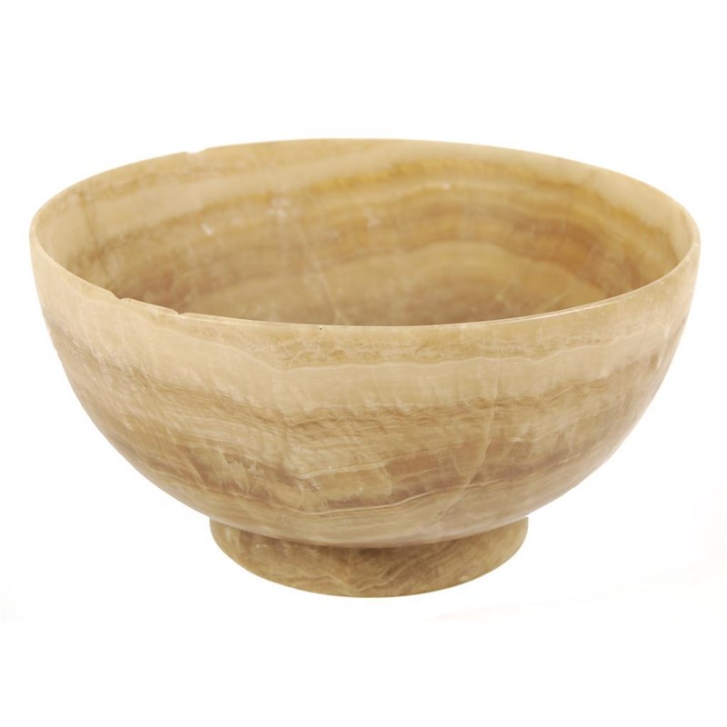 A turned alabaster footed bowl, 6in (15cm) h, 11.75in (29.7cm) dia. Rim chips and a restored crack.