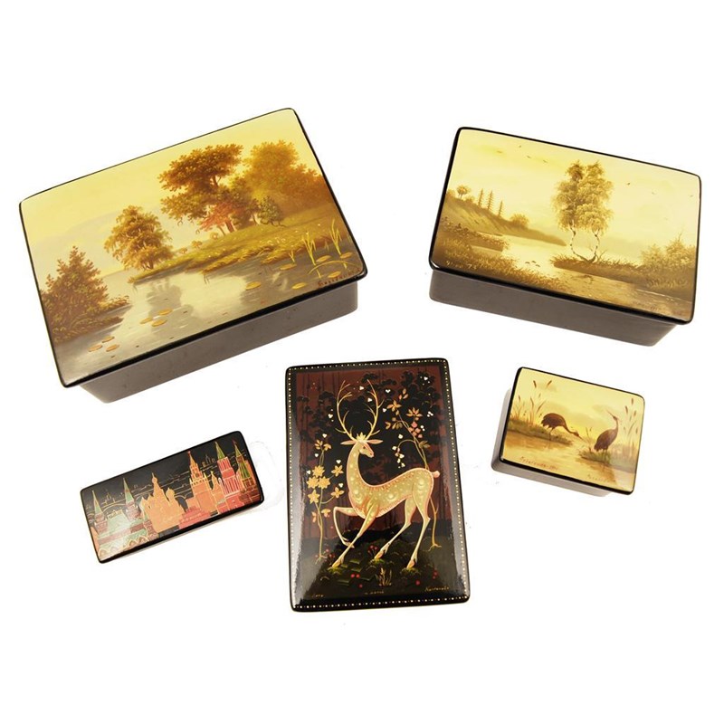 Five Russian lacquer boxes