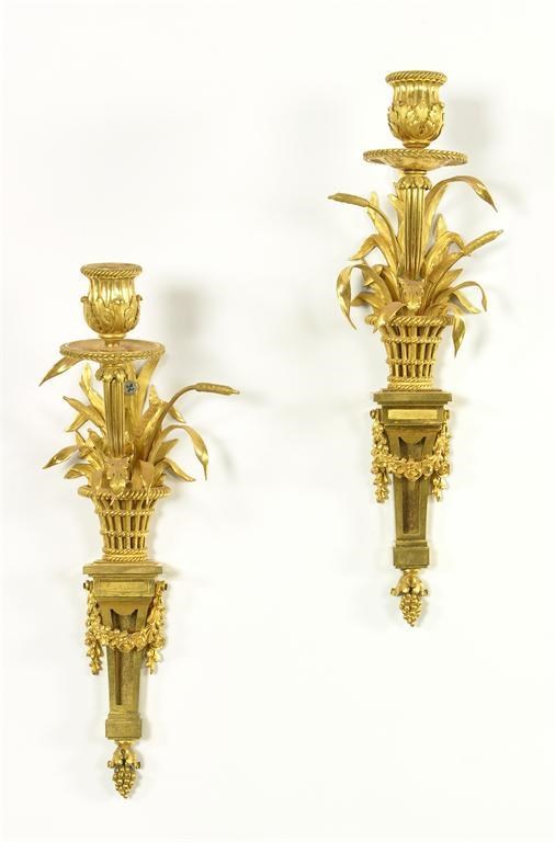 A pair of 19th century French ormolu single branch wall lights