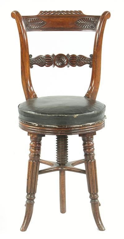 A George IV carved and simulated rosewood cellist's chair, the seat revolving on a screw.