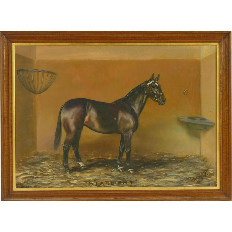G.A. Cattley. 'Starlight', portrait of a horse in a stable, gouache, titled, signed and dated 1938, 13.5 x 19in (34 x 48cm).