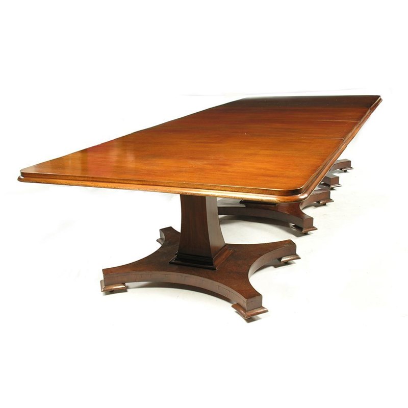 An early Victorian mahogany triple pillar dining table