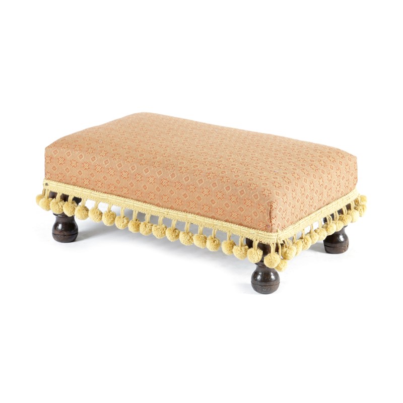 of rectangular form, the stuffed-over cushion on short turned cup and cover feet
