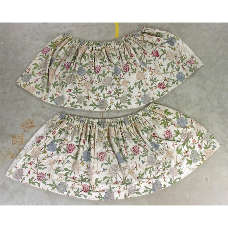 A pair of crewel-work short curtains, late 19th/early 20th century. (2)
