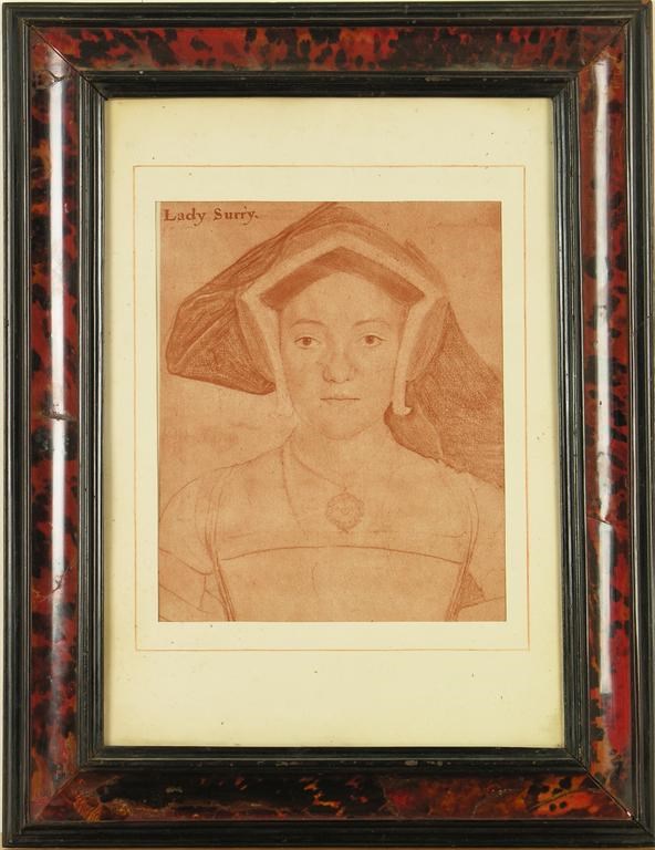 A tortoiseshell and ebonised moulded frame, with cavetto shaped border, 19.25 x 14.75in (49 x 37.5cm).`