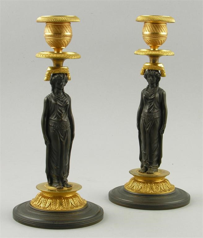 A pair of early 19th century bronze and ormolu candlesticks